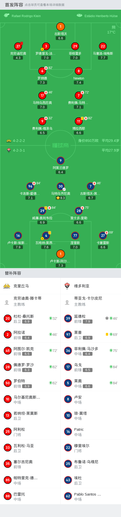 第68分钟,维多利亚球员马特乌齐尼奥助攻延德松打入一球。
