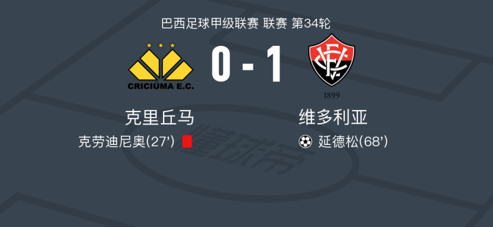 在巴西足球甲级联赛第34轮的较量中,克里丘马坐镇主场迎战维多利亚。比赛中,克里丘马的克劳迪尼奥因犯规被罚下场,给球队带来了不小的压力。随后,维多利亚的马特乌齐尼奥送出精妙助攻,延德松抓住机会攻入制胜一球。最终,维多利亚凭借这一进球,以1-0小胜克里丘马,取得了宝贵的胜利。