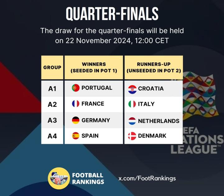 参加UNL1/4决赛的八支球队里,将有两支必然被列入五队组,那么这两支球队将在2025年的3月轮空,由本组其他四支球队先踢EQ的比赛。