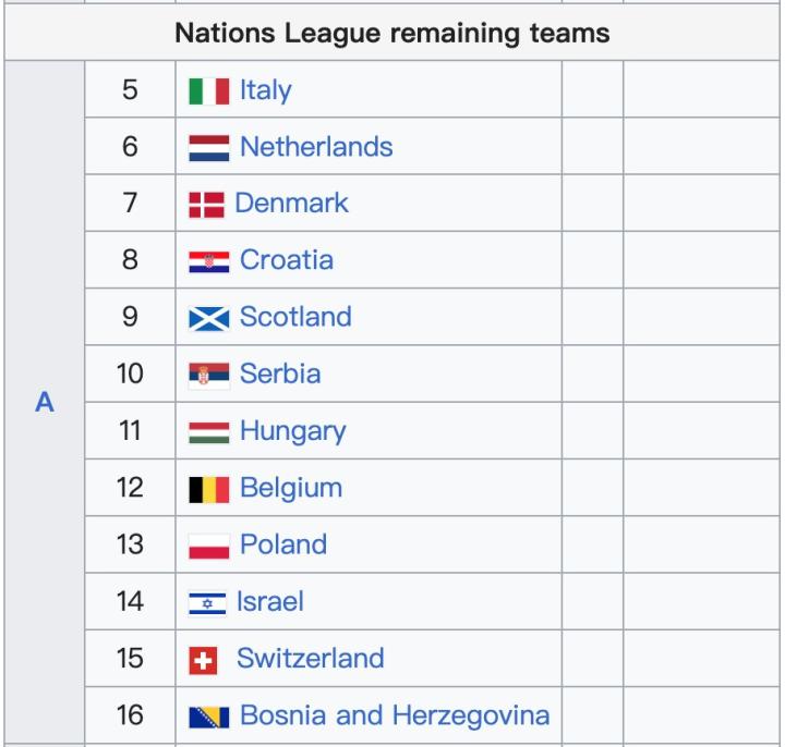 12支EQ小组第二届时将根据世界排名,在附加赛抽签时进入一到三档,四支UNL通道的球队将进入第四档。