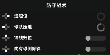 局内的“造越位”快捷战术,主要作用是让后卫线前提,不要缩在后面,那样不利于整体压迫。键盘按F1;手柄先按左十字键的右键、再按右键。
