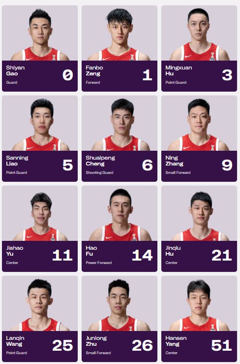 后卫:高诗岩、胡明轩、廖三宁、王岚嵚、程帅澎