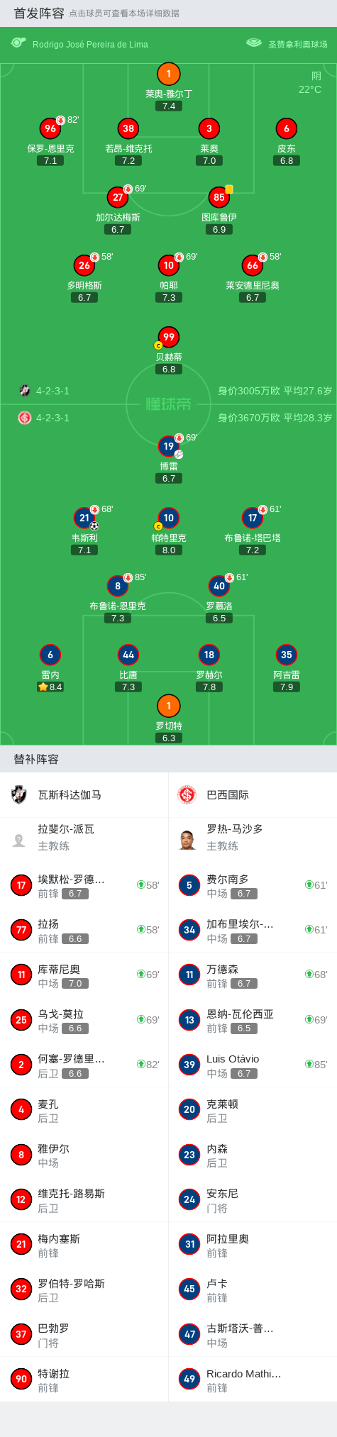 在巴西足球甲级联赛第34轮的较量中,瓦斯科达伽马坐镇主场迎战巴西国际。比赛中,巴西国际的博雷送出精妙助攻,韦斯利抓住机会成功破门,为球队取得领先。最终,巴西国际凭借这一进球,以1比0小胜瓦斯科达伽马,取得了宝贵的胜利。
