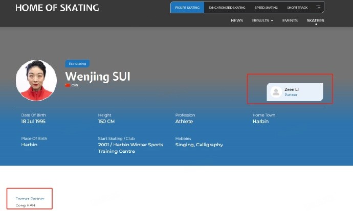 根据ISU国际滑联官网显示,中国花样滑冰双人滑女运动员隋文静的新搭档人选确定为25岁的李泽恩。