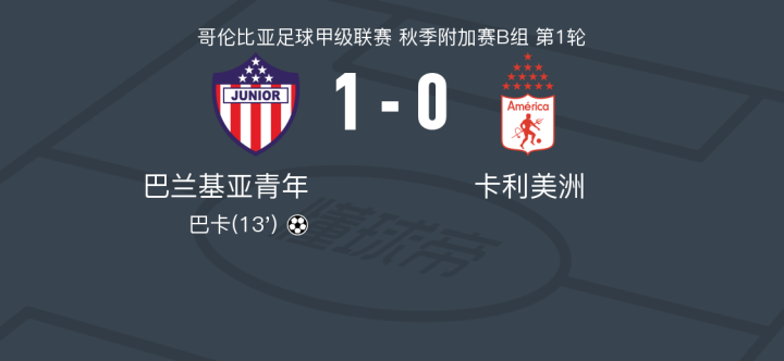 巴兰基亚青年1-0卡利美洲,巴卡一击制胜
