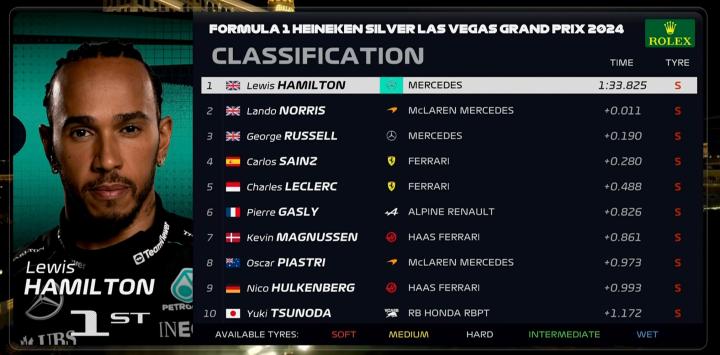 第1-第5:汉密尔顿、诺里斯、拉塞尔、塞恩斯、勒克莱尔