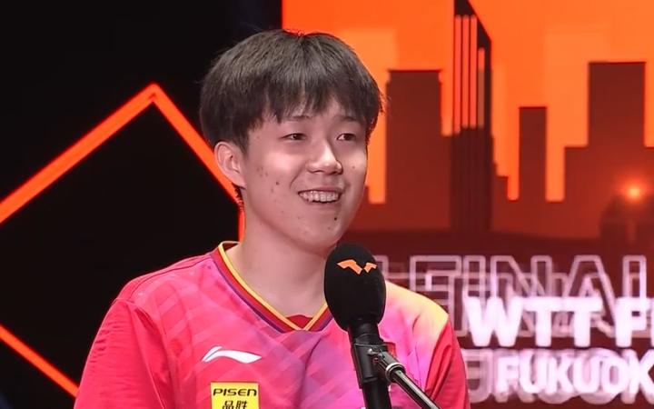 接受采访时被音响打断,王楚钦调侃道:到时间了,不让说了是吗