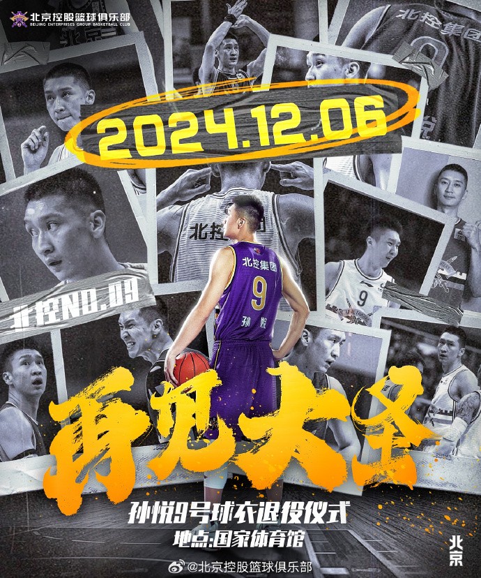 时光在不经意间流逝,2024年12月6日,我们将在国家体育馆,携手广大球迷一道见证大圣孙悦9号球衣的退役仪式!