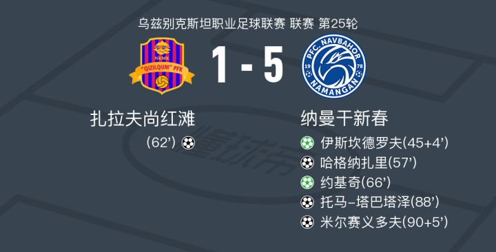 纳曼干新春5-1大胜扎拉夫尚红滩
