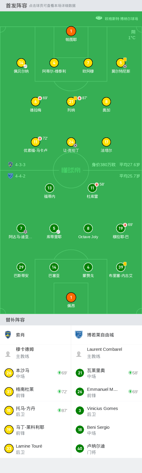 第60分钟,索肖球员佩贝尔纳助攻莫尔特尼斯打入一球。