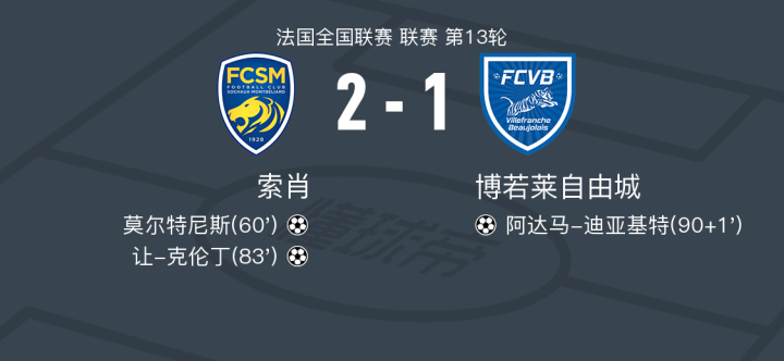 索肖2-1博若莱自由城,让-克伦丁建功,莫尔特尼斯破门