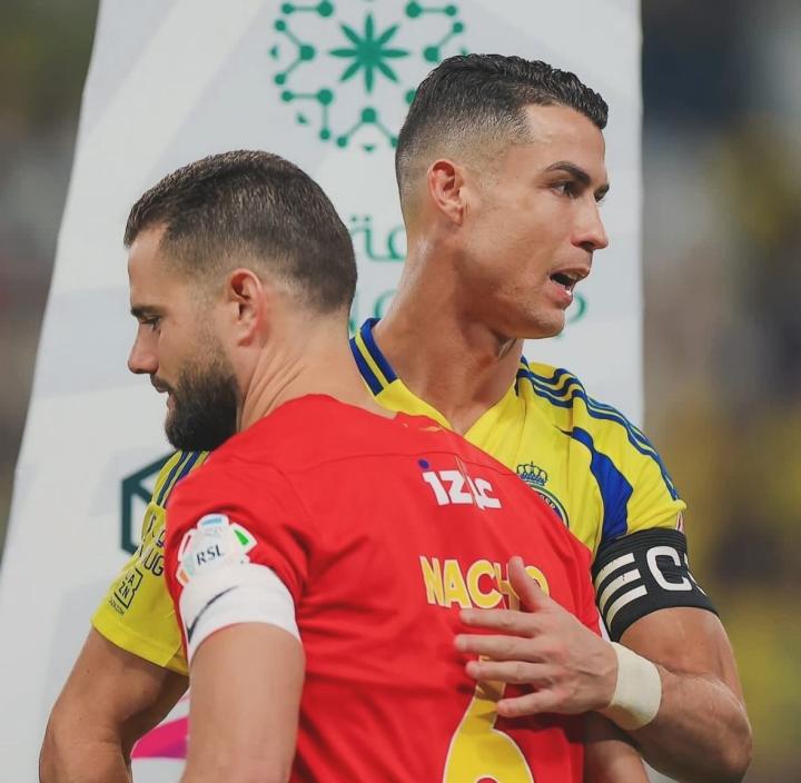 在胡拜尔库迪西亚2-1逆转击败利雅得胜利之后,胡拜尔库迪西亚队长纳乔在社交媒体晒出他和前皇马队友C罗的合照。