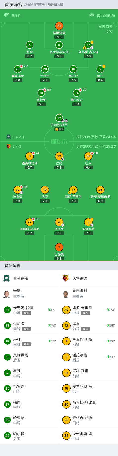 下半场补时第6分钟,普利茅斯球员班杜助攻安德烈-格雷打入一球。