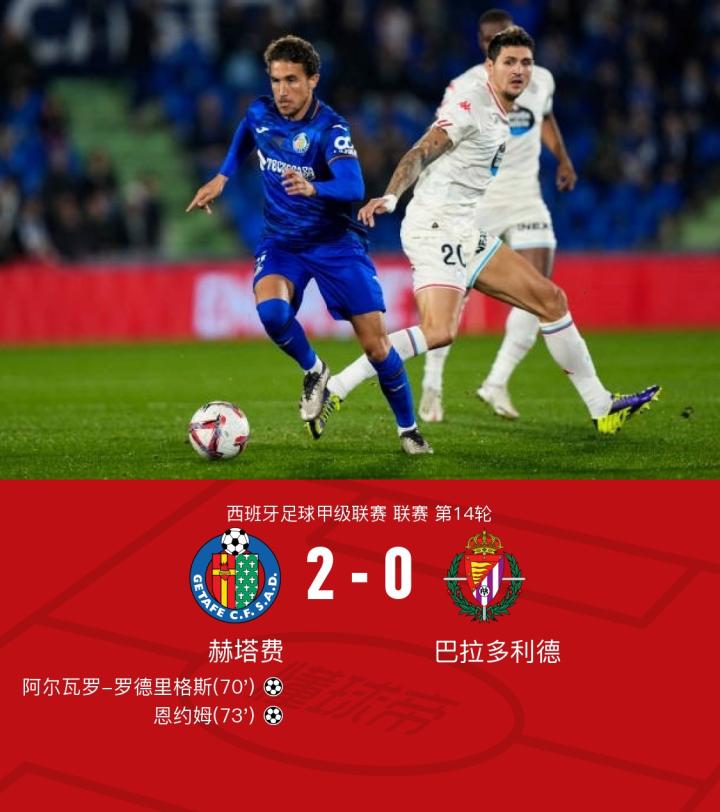 赫塔费2-0巴拉多利德结束5轮不胜,恩约姆传射,阿尔瓦罗建功