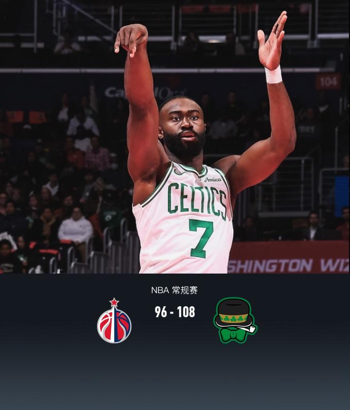 布朗31+11,凯尔特人108-96轻取奇才,塔图姆16分,普尔23分