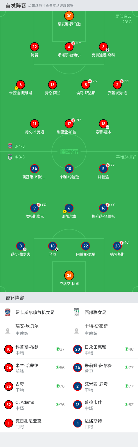 纽卡斯尔喷气机女足1-1西部联女足,克劳迪娅-奇科先拔头筹,马厄扳平