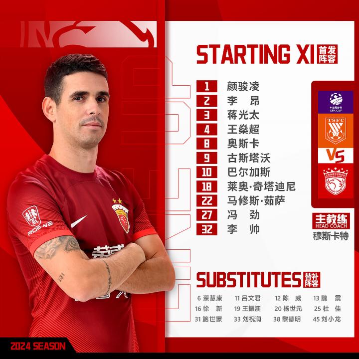 2024中国足协杯决赛 ,山东泰山vs上海海港,今日首发名单
