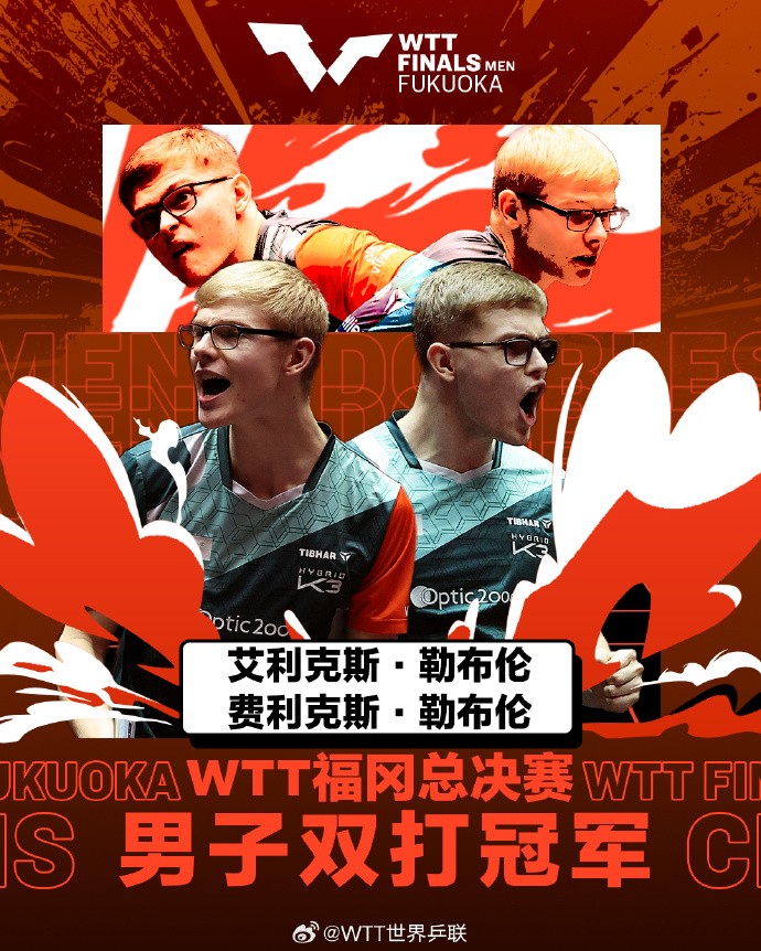 WTT福冈总决赛男双决赛今晚展开,法国组合费利克斯-勒布伦和艾利克斯-勒布伦以3-2的比分逆转战胜日本组合户上隼辅/篠塚大登,拿到冠军。