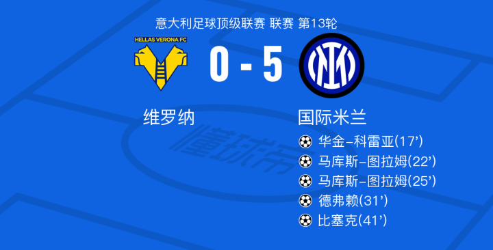国际米兰vs维罗纳球员评分:华金-科雷亚9.4分,达维多维奇5.9分