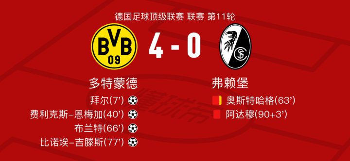 多特蒙德vs弗赖堡球员评分:费利克斯-恩梅加8.4分,奥斯特哈格5.7分