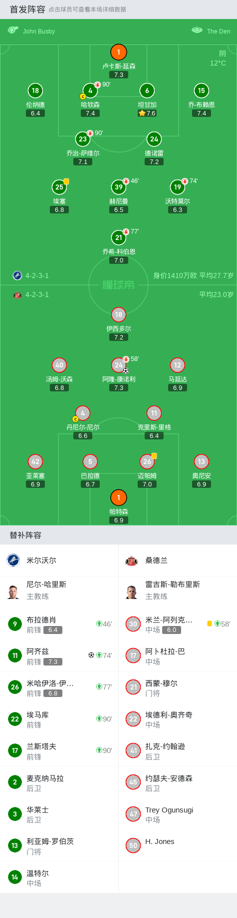米尔沃尔1-1桑德兰,阿隆-康诺利打破僵局,阿齐兹扳平