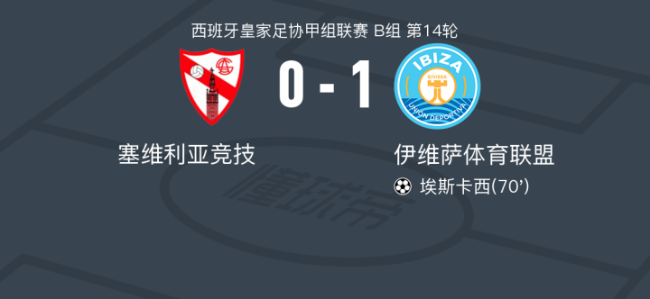 伊维萨体育联盟1-0塞维利亚竞技,埃斯卡西打进全场唯一进球