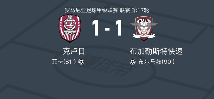 克卢日1-1布加勒斯特快速,菲卡破僵,布尔马兹扳平比分