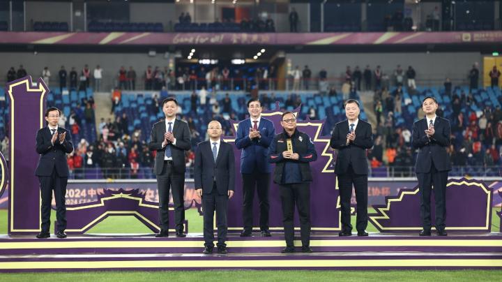 另外在赛事周边产品开发方面,伴随着上海海港的成功登顶,由主办方特别打造的“限量版2024赛季中国足协杯冠军礼盒”也在第一时间与球迷见面,这套冠军礼盒包括“纪念版”冠军奖牌及冠军服。其中冠军奖牌由沈阳造币厂精心打造,设计灵感源自足协杯奖杯,象征足球赛事的至高荣誉。以“龙跃金辉”为主题的2024赛季中国足协杯冠军服,由舒莱狮与中国足协杯联手打造,承载着中国足球的梦想与激情。既致敬传统,又展望未来。