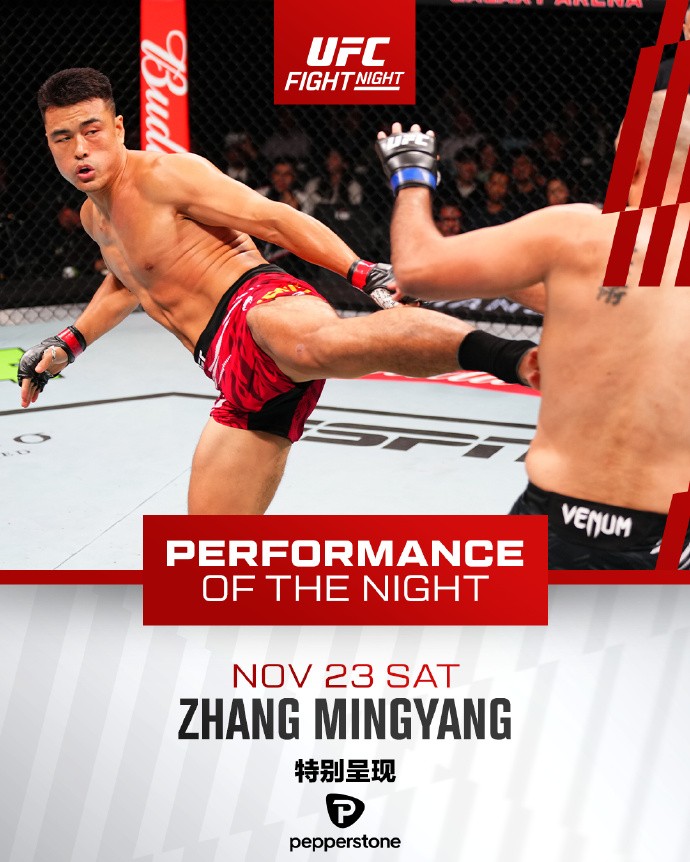 张名扬、石铭等4人获UFC澳门最佳花红奖,奖金为5万美金