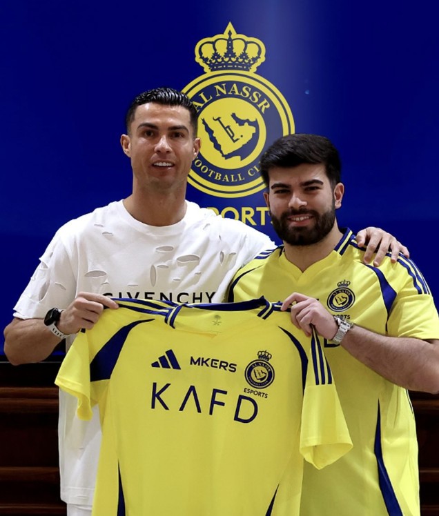 最近,利雅得胜利俱乐部官方发布新动态,晒出了一张克里斯蒂亚诺-罗纳尔多与新加盟的电子竞技选手若昂-阿方索的合影。