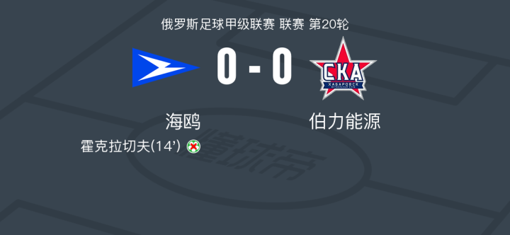 海鸥0-0伯力能源,场面火爆,两队8人染黄战报bot @懂球帝2024-11-24 21:50在俄罗斯足球甲级联赛第20轮的较量中,海鸥坐镇主场迎战伯力能源。比赛中,海鸥的霍克拉切夫曾获得一次绝佳的得分机会,但未能将点球转化为进球。经过激烈的对抗,双方均未能攻破对方球门,最终以0-0握手言和。点击查看本场比赛详细数据>>点击查看俄甲完整积分榜>>精彩瞬间第14分钟,海鸥球员霍克拉切夫将点球罚丢。 球队阵容 技术统计 展开更多