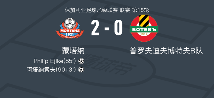蒙塔纳2-0普罗夫迪夫博特夫B队,Philip Ejike建功,阿塔纳索夫锦上添花