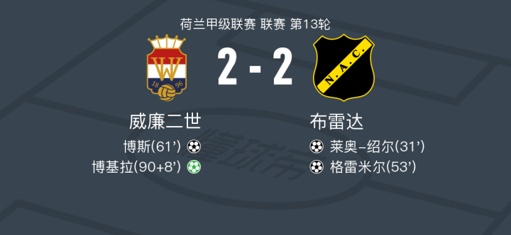 威廉二世2-2布雷达,莱奥-绍尔先拔头筹,博基拉扳平比分