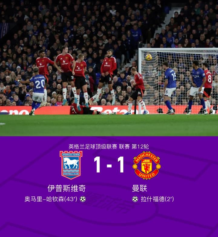剑南春 | 曼联客场1-1伊普斯维奇,拉什福德闪击,哈钦森世界波