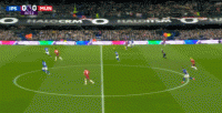 第18分钟,加纳乔禁区左路兜射远角,球稍稍偏出球门远端立柱