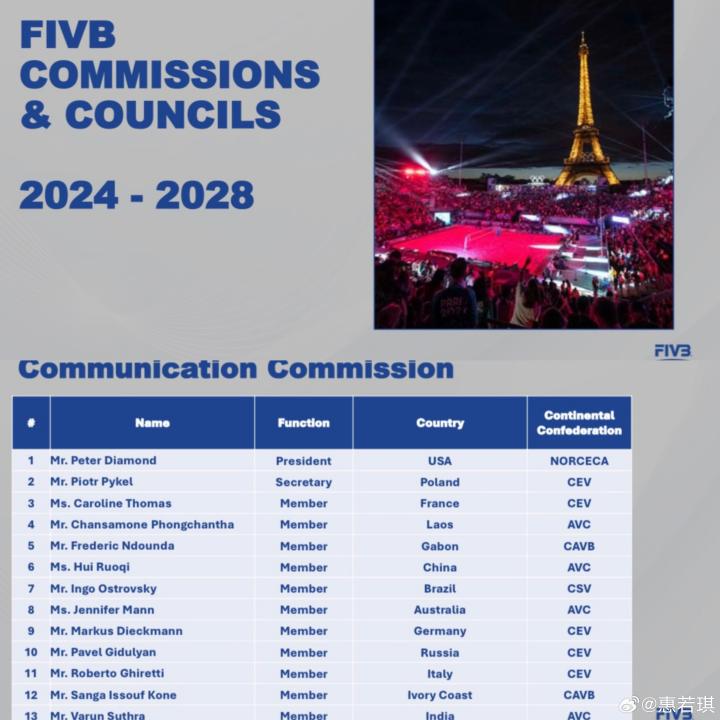 惠若琪通过社交媒体表示:“很荣幸再次担任国际排联通讯传播委员会委员,祝贺Fabio先生履新国际排联主席,新的周期,继续为排球事业发光发热。”