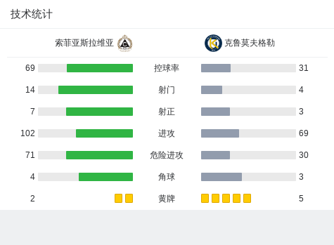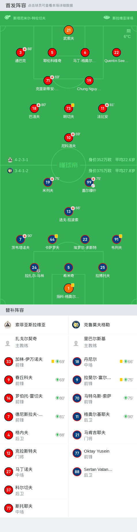 在保加利亚甲级联赛第16轮的较量中,索菲亚斯拉维亚坐镇主场迎战克鲁莫夫格勒。比赛中,克鲁莫夫格勒的拉扎尔-马林在队友盖尔穆什的助攻下成功破门,帮助球队取得领先。最终,克鲁莫夫格勒以1比0战胜索菲亚斯拉维亚,客场全取三分。
