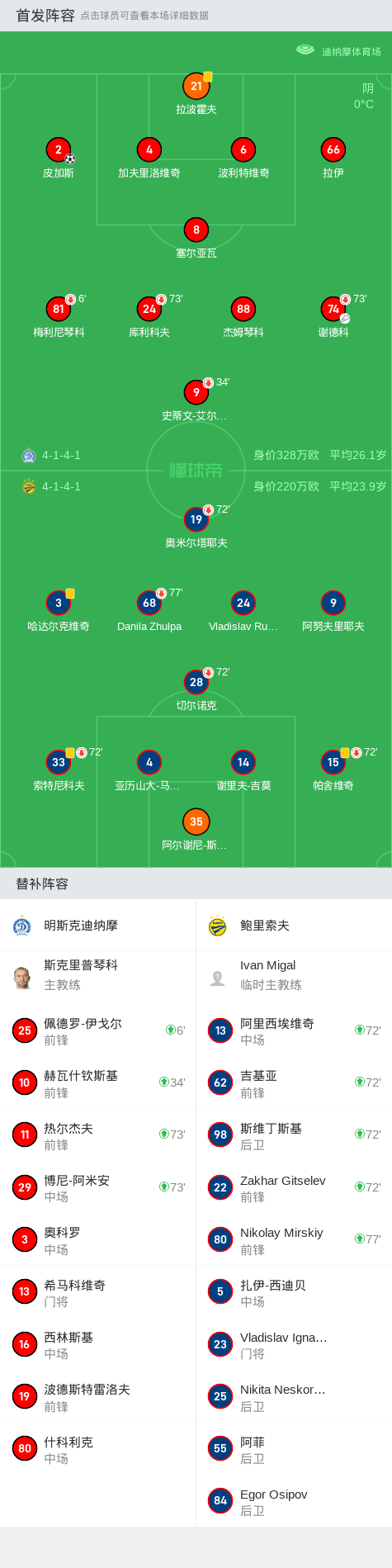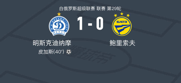 明斯克迪纳摩1-0鲍里索夫,皮加斯制胜球