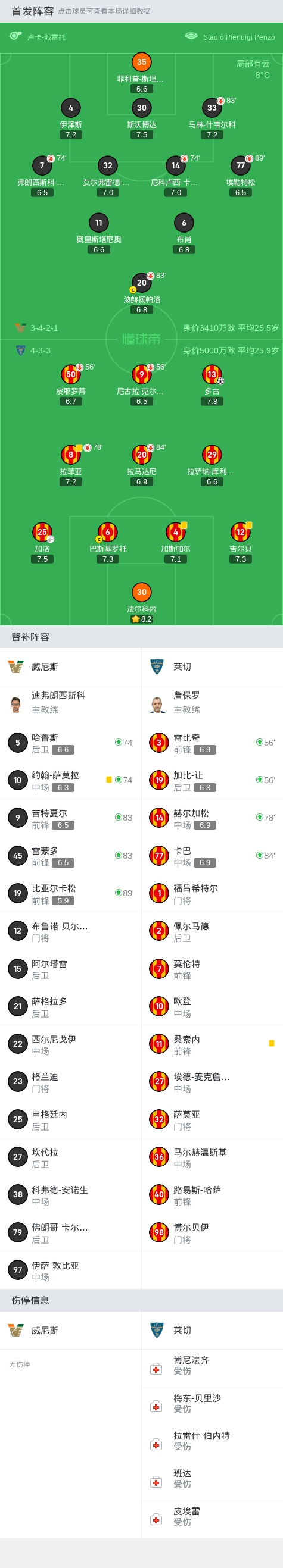 威尼斯多次错失破门良机0-1莱切,加洛助攻多古破门战报bot @懂球帝2024-11-26 05:38在意大利足球顶级联赛第13轮的较量中,威尼斯坐镇主场迎战莱切。比赛中,莱切的多古在加洛的助攻下成功破门,为球队取得领先。最终,莱切凭借这一进球,以1比0战胜威尼斯,取得了比赛的胜利。点击查看本场比赛详细数据>>点击查看意甲完整积分榜>>精彩瞬间第70分钟,莱切球员加洛助攻多古打入一球。 球队阵容 技术统计 展开更多