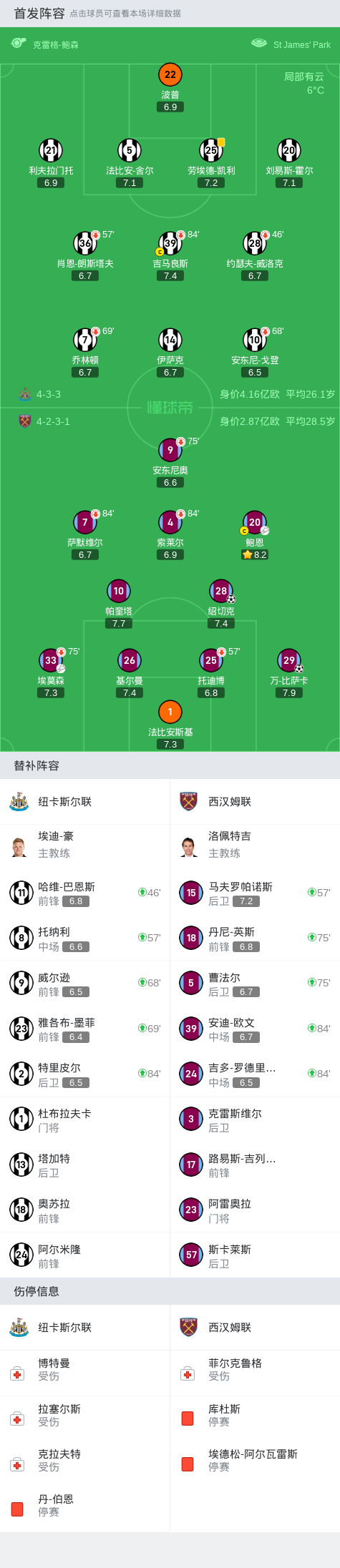 纽卡0-2西汉姆联,万-比萨卡迎西汉姆联生涯首球,绍切克建功