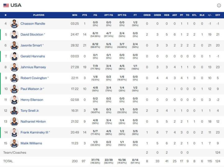 男篮美洲杯预选赛:美国男篮97-74巴哈马男篮,斯玛特21分大根菌 @懂球帝2024-11-26 10:12北京时间11月26日,男篮美洲杯预选赛,美国男篮97-74力克巴哈马男篮。本场比赛,贾旺特-斯玛特投篮12中8,砍下全队最高21分,此外还有3板2助2断;热迈厄斯-拉姆齐投篮9中7,拿下19分3板4助;科温顿拿下3分4板3助。巴哈马方面,塔瓦里奥-米勒拿到全队最高分20分,此外还有10个篮板。目前美国男篮在D组以3胜1负的战绩排名第一。展开更多