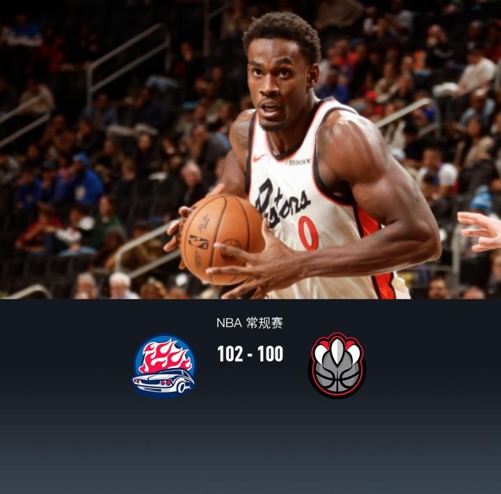 第四节活塞斯图尔特拿下9分,猛龙斯科蒂-巴恩斯拿下9分,最终活塞102-100战胜猛龙