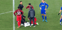 第45+2分钟,杨世元面部受伤,队医进场治疗被出示黄牌