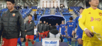 双方球员步入球场,大战即将打响