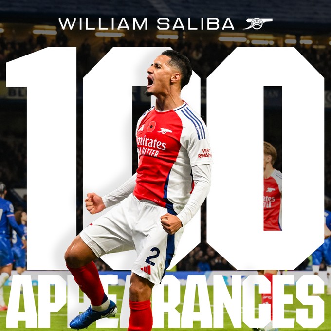 此前99场比赛,萨利巴赢下了64场。萨利巴是第238位代表阿森纳出场100次的球员,也是第17位完成这一成就的法国球员。