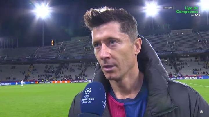 梅开二度帮助巴萨在欧冠主场3-0击败布雷斯特后,波兰前锋莱万接受了Movistar+的采访,此役他收获了个人在欧冠的第100和第101球。