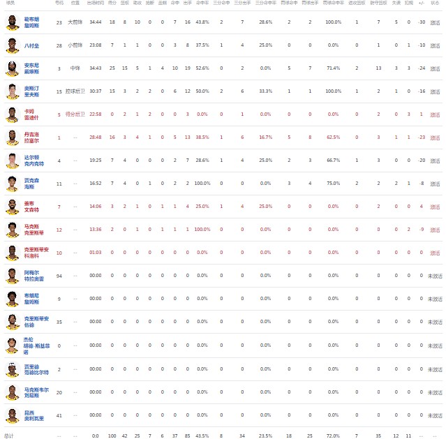球员全场数据