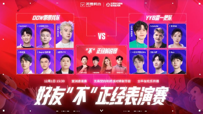 北京时间11月27日,无畏契约官方公布了源能亚洲邀请赛表演赛名单,s1mple、DANK1NG等电竞选手、明星、主播参赛。