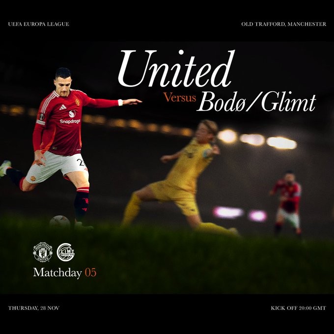 欧联杯联赛阶段第5轮,曼联将主场对阵博德闪耀,新主帅阿莫林迎来主场首战,赛前,曼联官方发布比赛海报。