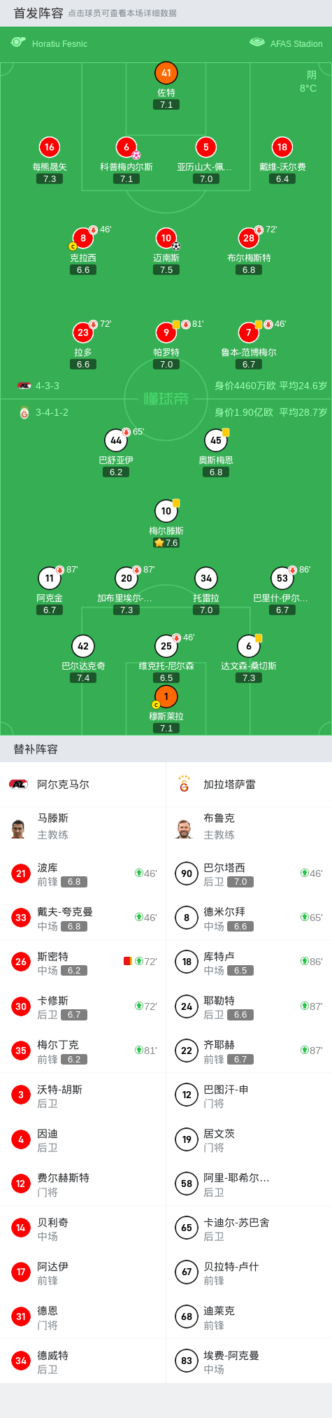 阿尔克马尔1-1加拉塔萨雷,迈南斯闪击,科普梅内尔斯乌龙球